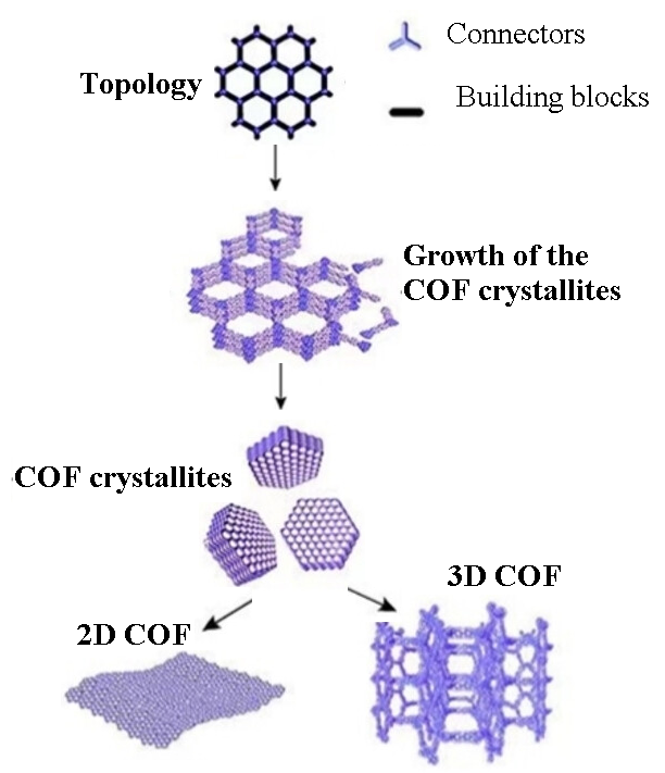 Наночастицы ковалентного органического каркаса с иминной связью (nCOF) были использованы для пероральной доставки инсулина в организм животного. Гастрорезистентный nCOF был приготовлен из слоистых нанолистов с инсулином, загруженным между слоями нанолистов. Нагруженный инсулином nCOF продемонстрировал защиту инсулина в пищеварительных жидкостях in vitro, а также высвобождение в ответ на глюкозу [138]. В перспективе, пероральные системы доставки инсулина на основе nCOF способны заменить традиционные подкожные инъекции, облегчая проведение инсулинотерапии. Разработанные методы синтеза соединений COF позволяют получать как 2D, так и 3D COF структуры [131, 133, 137]. Основу и разнообразие структур COF составляют большое количество химических соединений и образование стабильных связей, в том числе иминовых, образующиеся при конденсации альдегидов и аминов [134]. Иминные связи (основания Шиффа) являются наиболее распространенной стратегией синтеза, используемой для создания COF. Гидразиды обратимо конденсируются с альдегидами с образованием гидразонов, что позволяет использовать это соединение для синтеза COF [139]. Благодаря азиновой связи можно получить различные геометрии пор. Кето-енаминовые COF отличаются высокой химической стабильностью в кислых и щелочных средах [140]. Ковалентные триазин-каркасные структуры с настраиваемой пористостью и изменяемой структурой делает их перспективными для решения экологических проблем [141, 142].