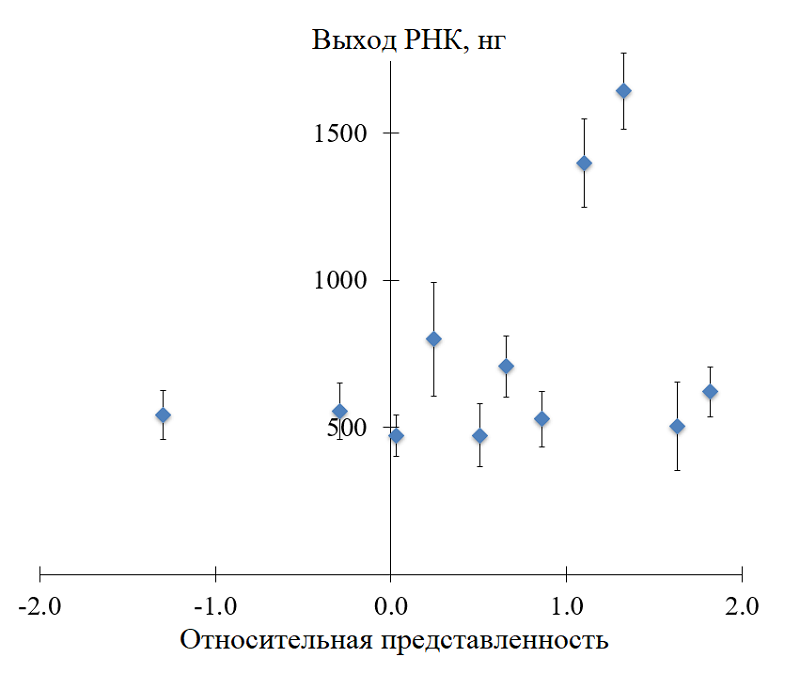NASBA (Nucleic Acid Sequence Based Amplification) – метод изотермической амплификации РНК, позволяющиq выявлять инфекционные агенты в лабораторных внелабораторных условиях. Он основан на присутствии промотора РНК-полимеразы фага T7 в одном из праймеров NASBA, и эффективность метода в значительной степени зависит от силы промотора. Известно, что при транскрипции in vitro сила промотора в значительной степени зависит от последовательности, расположенной непосредственно после коровой последовательности промотора T7. В данной работе эффективность NASBA была экспериментально оценена для различных вариантов 8-нуклеотидных последовательности, расположенной непосредственно после коровой последовательности промотора T7. Варианты были ранжированы по известным выходам РНК, образующейся при транскрипции in vitro. Было обнаружено, что ранг 8-нуклеотидного продления основной последовательности промотора T7 может служить основанием для рационального выбора последовательнойтей эффективных праймеров NASBA. При этом не все 8-нуклеотидные продления, характеризующиеся наибольшим выходом РНК при транскрипции in vitro, обеспечивают наиболее эффективную амплификацию РНК-мишеней в NASBA. Для выбора наилучших кандидатов в праймеры NASBA по-прежнему требуется тщательная оценка способности праймера образовывать вторичные структуры с использованием алгоритмов сворачивания ДНК.